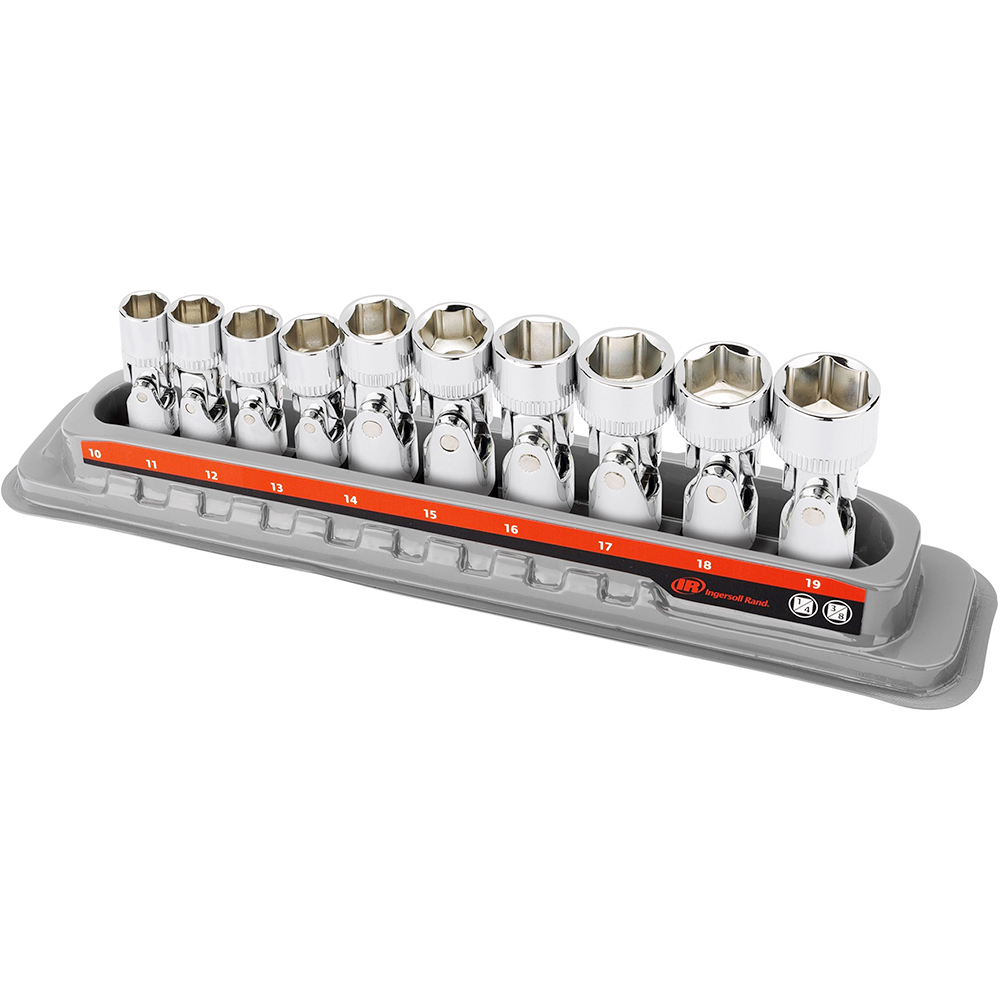 752046X-A Ingersoll Rand 1/4” Drive Deep Socket Set – SAE 6 Point 11PC. Color: Silver Country of Origin: Taiwan Drive Size: 1/4” ECCN (Export Control Classification Number): EAR99 Power Source: Hand Tool Product Height: 2.75” / 70mm